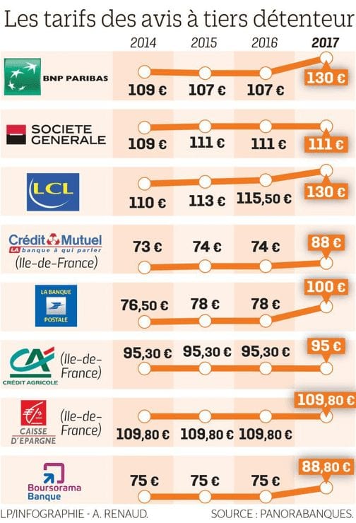 Il s’agit des coûts prélevés par les banques lorsqu’une administration fait une demande de saisie. Les banques se permettent d’augmenter leurs marges déjà considérables car les populations impactées par ces mesures ne correspondent pas à leur clientèle aisée privilégiée. Source : Le Parisien (2 octobre)