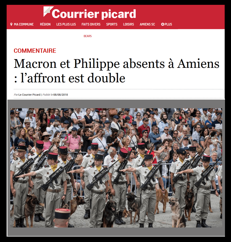 Environ 3 000 personnes, militaires et civils, dont plusieurs centaines de descendants de combattants venus de tous les pays du Commonwealth et de France, se sont déplacées pour rendre hommage aux dizaines de milliers de soldats morts il y a tout juste un siècle. À la fin de la Première Guerre mondiale, la bataille d’Amiens a marqué le début d’une offensive alliée qui précipita la défaite de l’Allemagne. Le président de la République et le Premier ministre n’ont pourtant pas jugé utile de se déplacer. Outre que cela constitue une insulte abjecte à la mémoire des milliers de soldats morts, les deux têtes de l’exécutif ont ainsi fait une nouvelle fois honte à la France, et ont infligé un camouflet diplomatique au Prince William et à la Première ministre britannique Theresa May qui avaient fait, eux, le déplacement.