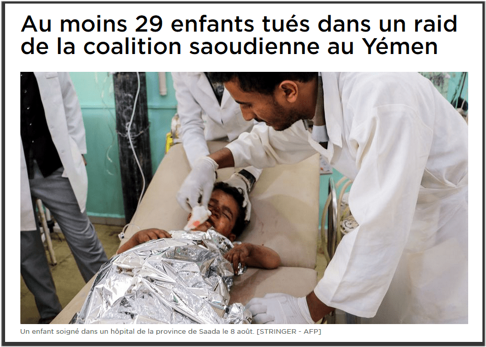 Des frappes aériennes dans la province de Saada, par la coalition menée par l’Arabie saoudite, ont atteint un bus scolaire. Le Conseil de sécurité de l’ONU a demandé une enquête.