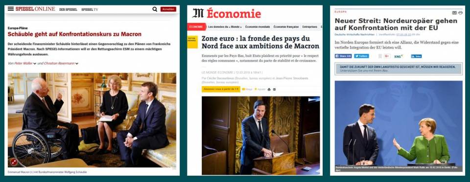 Deux mois plus tard, l’analyse des résultats du long processus ayant abouti à la GroKo dévoile une bien autre image : le gouvernement allemand ne semble pas du tout prêt à céder de nouveaux pans de souveraineté nationale. Le contrat de coalition est certes flou, mais aucune des propositions majeures de Macron n’y est reprise, et l’éviction de Martin Schulz montre que l’équilibre des pouvoirs ne penche pas du tout vers une souveraineté européenne. Les analystes ne prévoient donc pas d’avancées notables dans ce sens, comme le notent cet article du Spiegel ou celui de Manager Magazine .