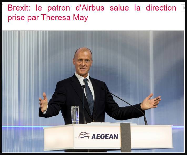 C’est ainsi que l’on a vu le président exécutif du groupe Airbus – l’Allemand Thomas Enders – se permettre, à quatre jours d’intervalle, de critiquer vertement et publiquement le gouvernement britannique pour ses tergiversations (le 6 juillet 2018 ) , puis saluer tout aussi publiquement la « bonne direction » prise désormais par Theresa May sur le Brexit et ayant motivé la démission des deux ministres les plus favorables au Brexit.