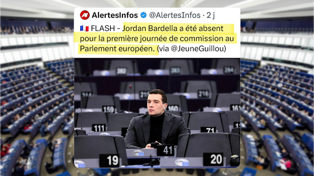 - d’autre part, Bardella s’est très vite replongé dans son activité favorite : être payé à ne rien faire. On a ainsi appris qu’il brille de nouveau par son absence au Parlement, comme pendant la mandature précédente.