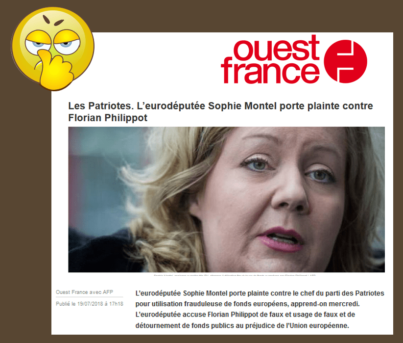 - que Florian Philippot est poursuivi en justice par son ex-bras droit, l’eurodéputée Sophie Montel, pour faux, usage de faux et détournement de fonds publics ( source ici )