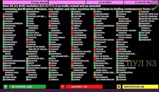 La sanction du député RN et les indignations des députés macronistes sont d’autant plus hypocrites qu’au même moment exactement la France a osé voter contre la résolution à l’ONU condamnant la glorification du nazisme dans les pays baltes et en Ukraine.
