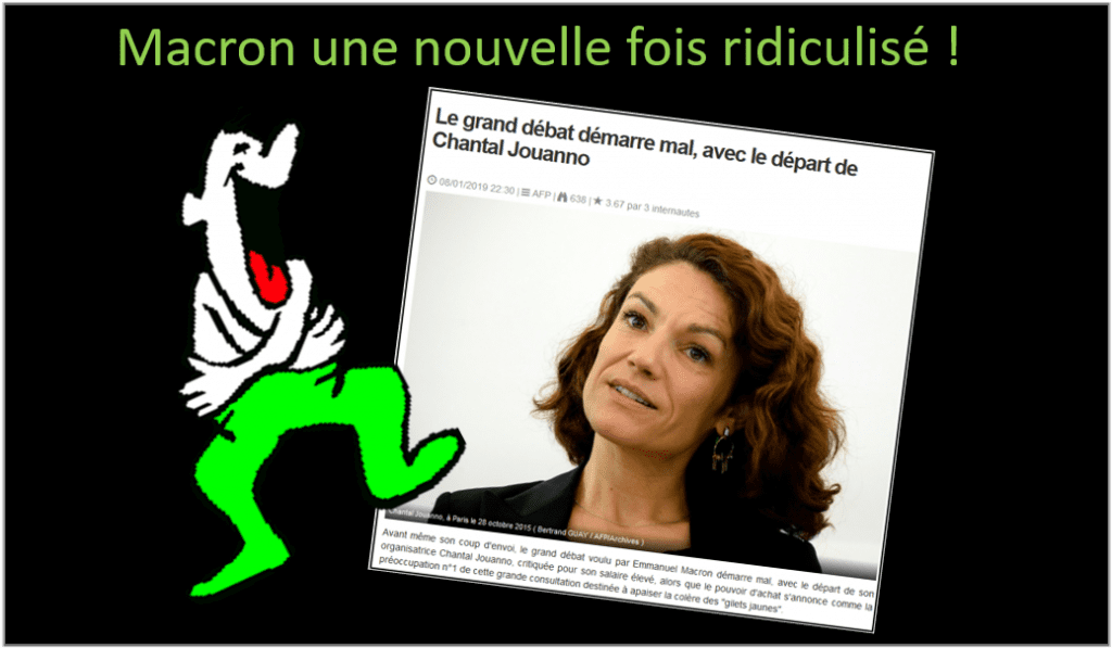 La présidente de la Commission nationale du débat public (CNDP) voulu par Macron – Chantal Jouanno – a démissionné en direct le mardi 8 janvier lors du journal de 20 heures de France 2. Elle a annoncé son retrait du « pilotage » du « grand débat national » après une vive polémique portant sur sa rémunération en pleine crise des « Gilets jaunes ».