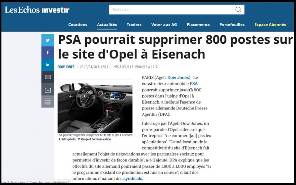 Ce jeu de chaises musicales industrielles n’est sans doute pas la seule explication. Il faut en effet rappeler que, voici un an, PSA avait annoncé un sévère plan social à Opel Eisenach, avec la suppression de 800 emplois.