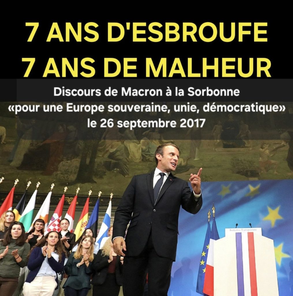 Il y a exactement 7 ans, le 26 septembre 2017, le président Macron fraîchement élu avait gratifié les Français et les «Européens» de sa «vision» de l’Europe, bien sûr sans en avoir parlé auparavant à aucun de nos 27 autres partenaires de l’UE (le Royaume-Uni était encore membre) pour vérifier s’ils étaient d’accord.