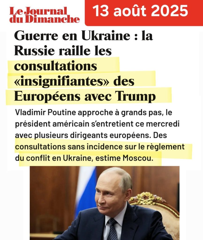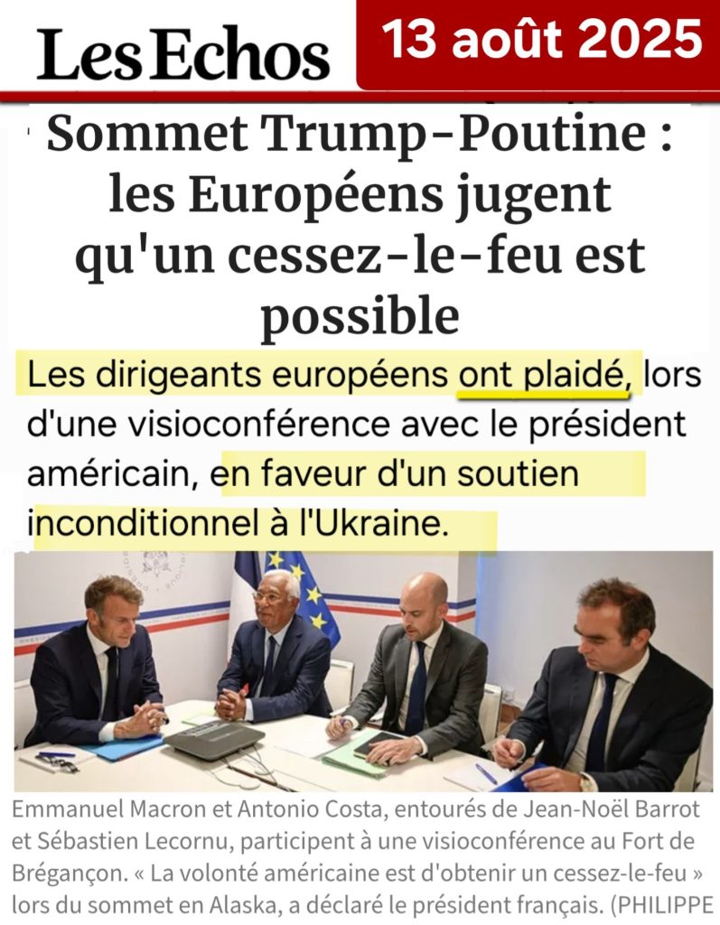 Avec Macron, les dirigeants de l’Union européenne rassemblés au grand complet, à l’exception de la Hongrie, ont « PLAIDÉ » [sic 😂] auprès de Trump « en faveur d’un soutien inconditionnel à l’Ukraine ».