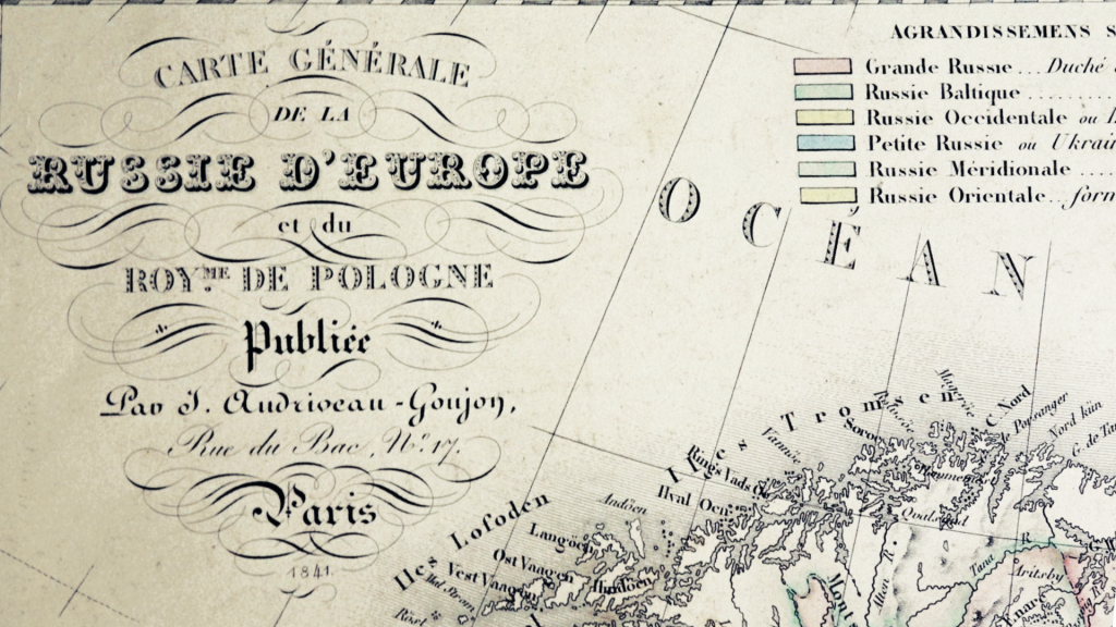 Consulter des cartes anciennes est toujours instructif. Et la carte n°17, intitulée « CARTE GÉNÉRALE DE LA RUSSIE D’EUROPE ET DU ROYAUME DE POLOGNE », l’est tout particulièrement.