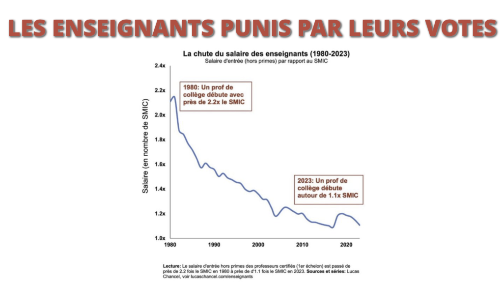 Faute de se documenter et de remettre en cause leurs habitudes électorales, les enseignants continuent, encore et encore, de voter pour des partis qui, du RN à LFI, ne veulent pas sortir du système européiste qui les conduit à leur continuel appauvrissement.