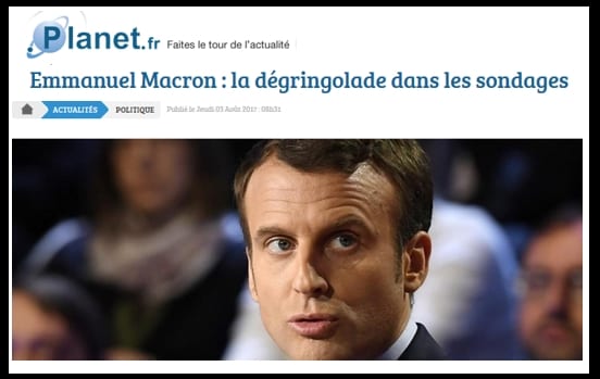 Le nouveau sondage de popularité paru ce 3 août 2017 révèle que la descente aux enfers de Macron se confirme. Il a perdu 7 points d’opinions favorables au mois de juillet après en avoir perdu 10 en juin.