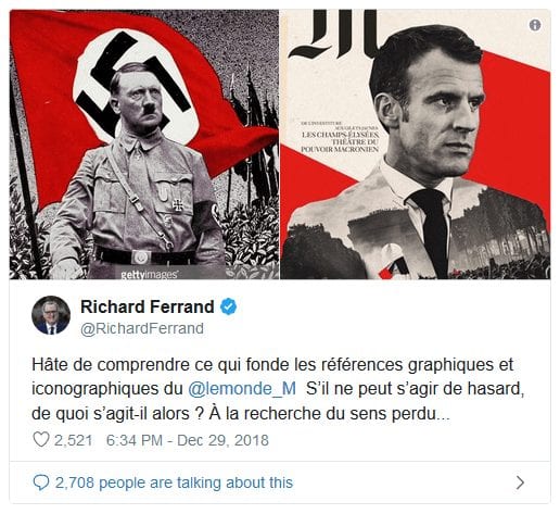 Ainsi, la couverture assassine de M, le magazine du Monde, comparant implicitement Macron à Hitler, selon le président de l’Assemblée nationale en personne Richard Ferrand , continue de faire jaser dans les cercles parisiens