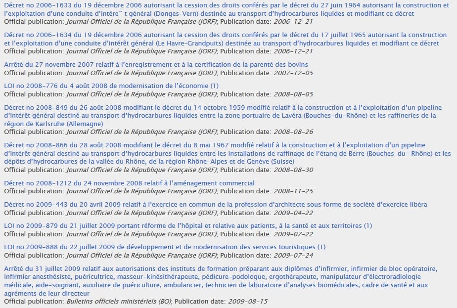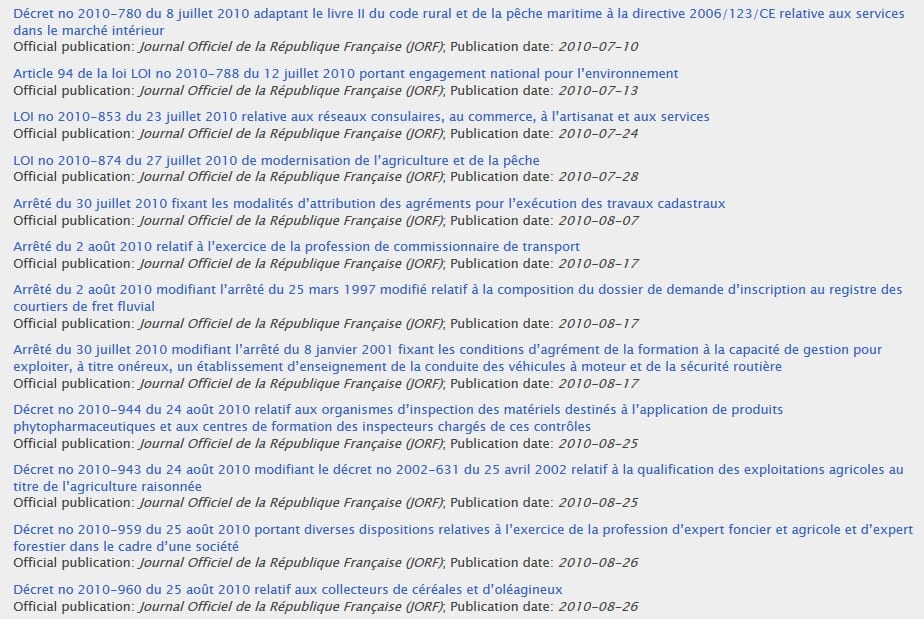 L’importance juridique de ces texte est telle qu’il ne fallut pas moins de 82 mesures législatives, entre 2006 et 2011 sous les présidences Chirac et Sarkozy, pour en transposer l’essentiel en droit français !