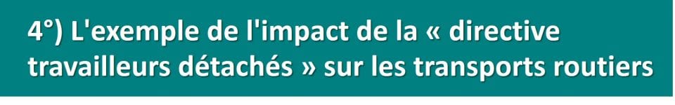 La « directive travailleurs détachés » affecte de plus en plus lourdement un nombre croissant de secteurs économiques en France. Tel est par exemple le cas du secteur des transports routiers, placé en concurrence frontale sans aucune protection avec les conducteurs routiers des pays de l’Est (bulgares, roumains, polonais, baltes…), dont les salaires et les avantages sociaux sont bien moindres que ceux des Français. Ce secteur est désormais carrément en voie de disparition.