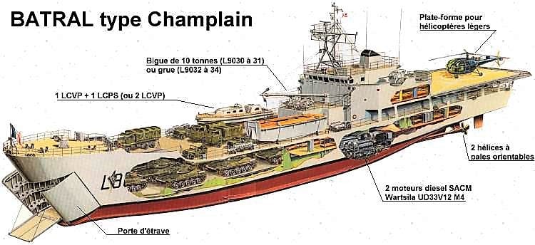 Comme déjà précisé, le Batral Dumont d’Urville était spécialement conçu pour la projection de troupes et de matériel dans les territoires ultramarins, avec une coque lui permettant de s’échouer sur une plage afin d’y débarquer hommes et véhicules.