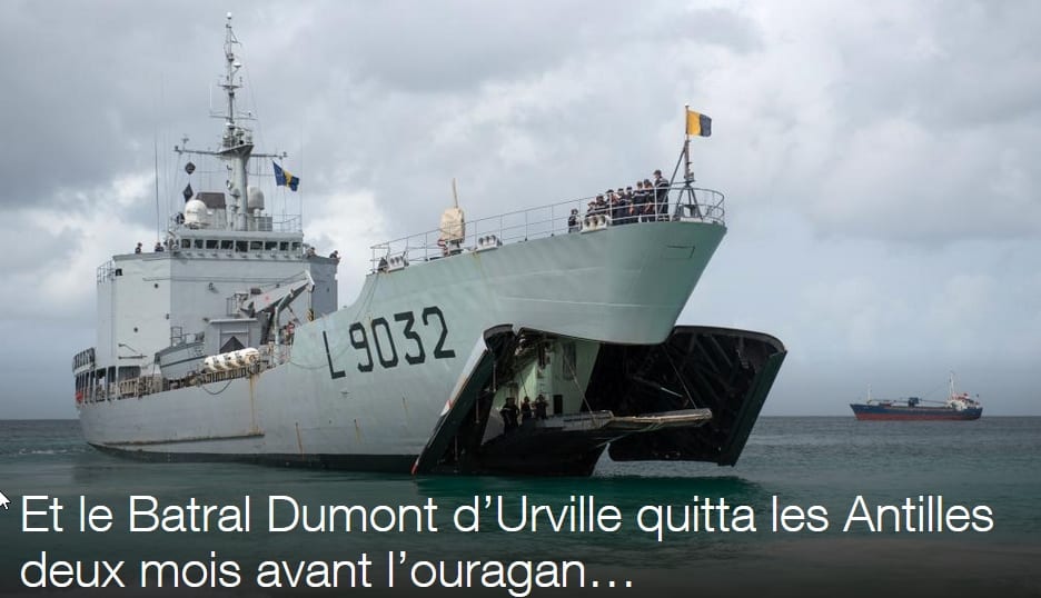 Alors que l’une des tâches essentielles de ce type de navire est de porter secours aux populations en cas de catastrophes naturelles, cette absence se fait cruellement sentir après que l’ouragan Irma, d’une force prodigieuse, vient tout juste de dévaster les îles françaises de Saint Martin et de Saint-Barthélémy.
