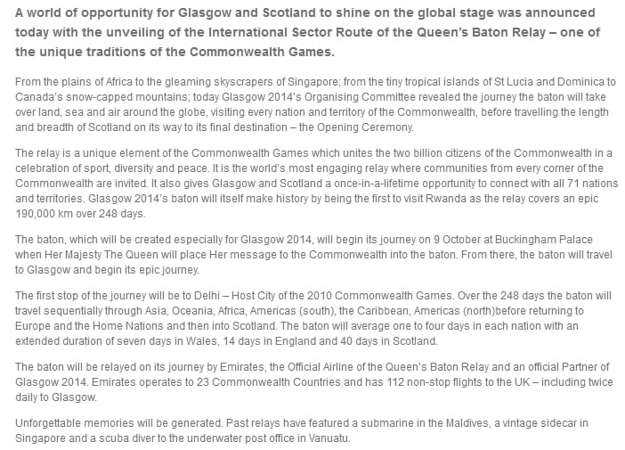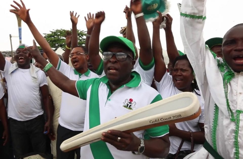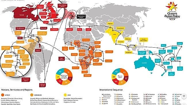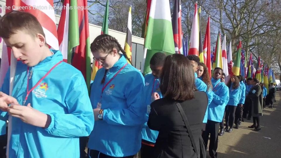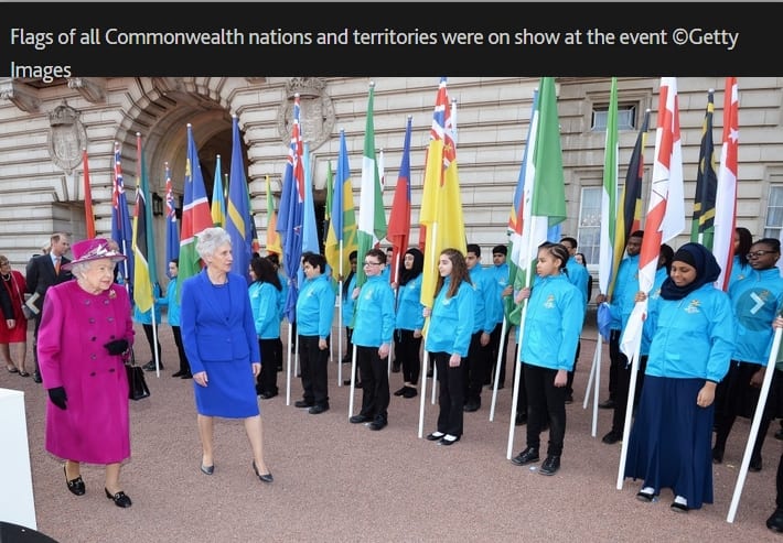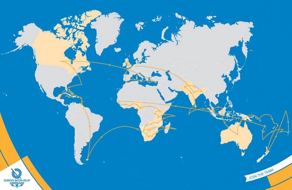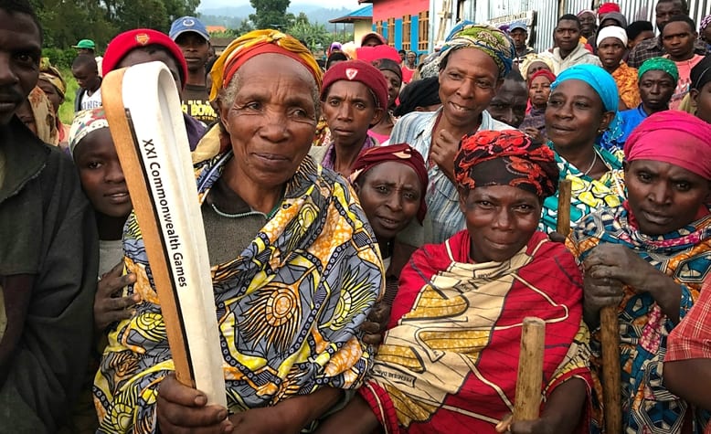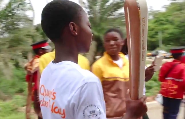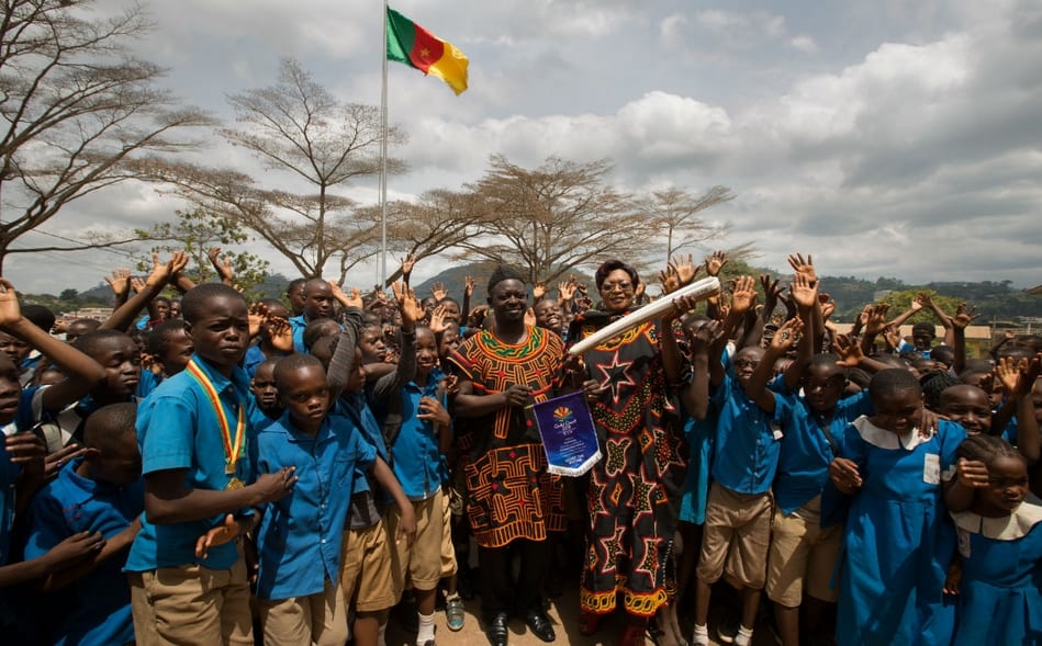 Au Cameroun du 29 mars au 1er avril 2017 – Le compte-rendu officiel des organisateurs du passage du « Queen’s Baton » dans ce pays très francophone précise : « que les habitants parlent le français ou l’anglais, leur jubilation d’avoir le Queen’s Baton dans les mains, que ce soit à l’école ou dans les rues, était évidente. »