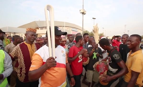 En Sierra Leone le 18 mars 2017 – Les habitants de la Sierra Leone ont été les premiers à recevoir le relais du « Queen’s Baton » après que la Reine Elizabeth II a placé son message de paix à l’intérieur de cet objet, le jour du Commonwealth Day au Palais de Buckingham.