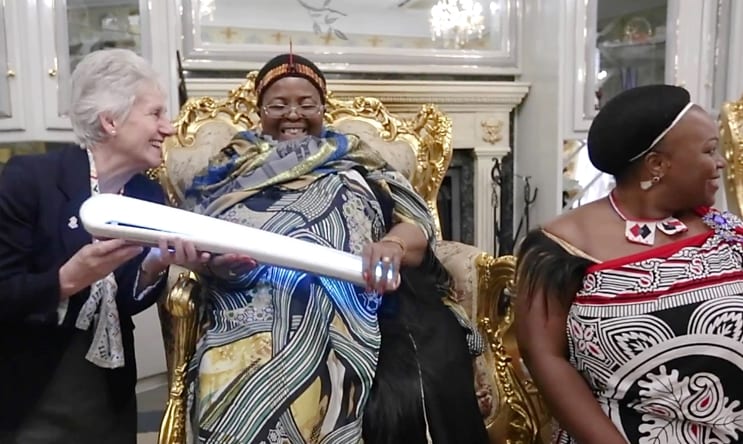 Au Swaziland le 15 mai 2017 – Le « Queen’s Baton » est présenté à S.M. Ntombi Twala, reine-mère (« Ndlovukati ») du Swaziland, au palais royal de Mbabane