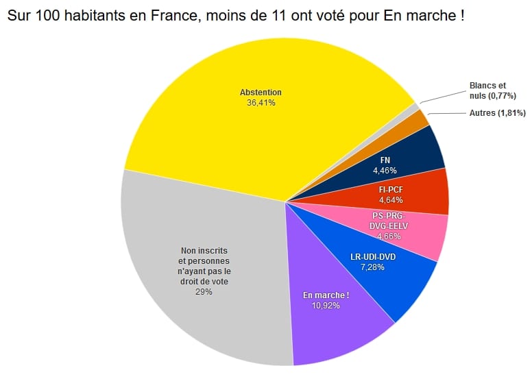Sur 100 personnes habitant en France, les 2/3 ne se sont pas exprimées lors de ce 1er tour :