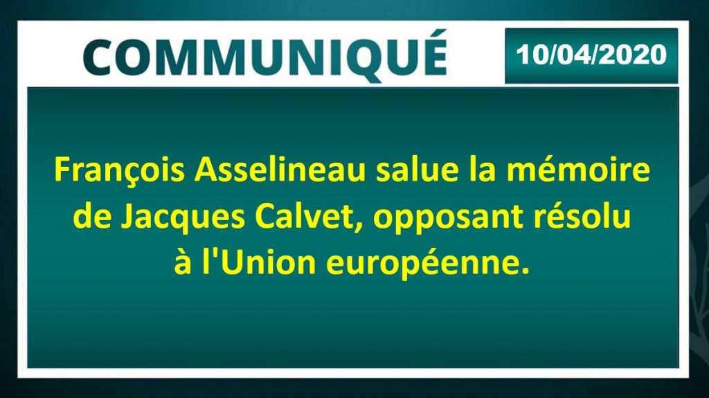 François Asselineau salue la mémoire de l’ancien président du groupe PSA, Jacques Calvet, disparu jeudi 9 avril 2020 à l’âge de 88 ans.