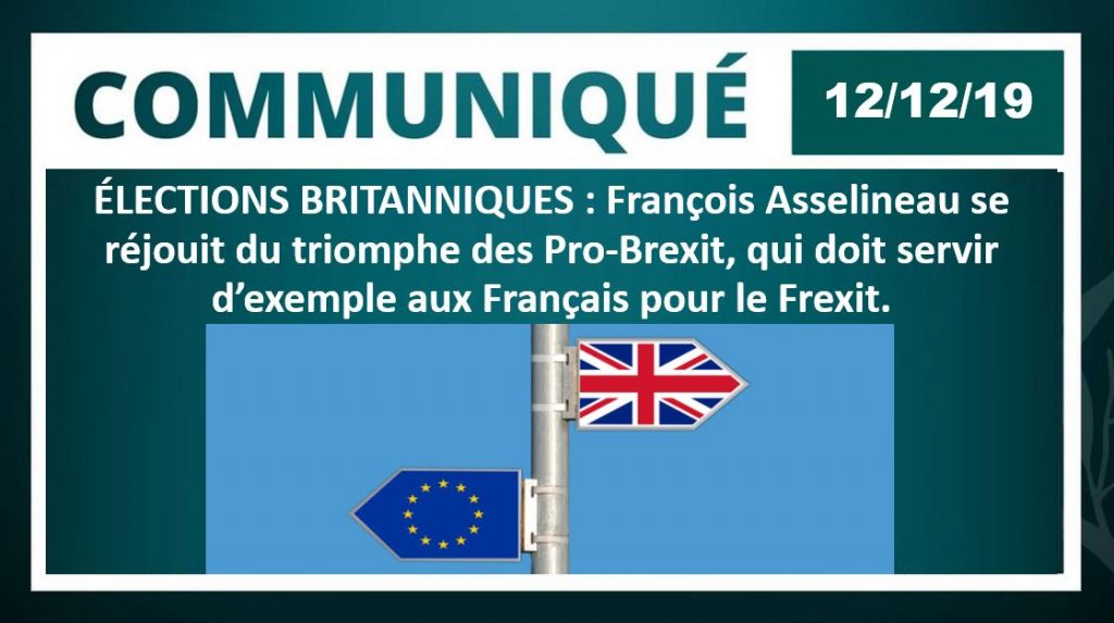 François Asselineau salue avec enthousiasme la victoire du camp du Brexit aux élections générales britanniques qui ont eu lieu ce jeudi 12 décembre 2019.