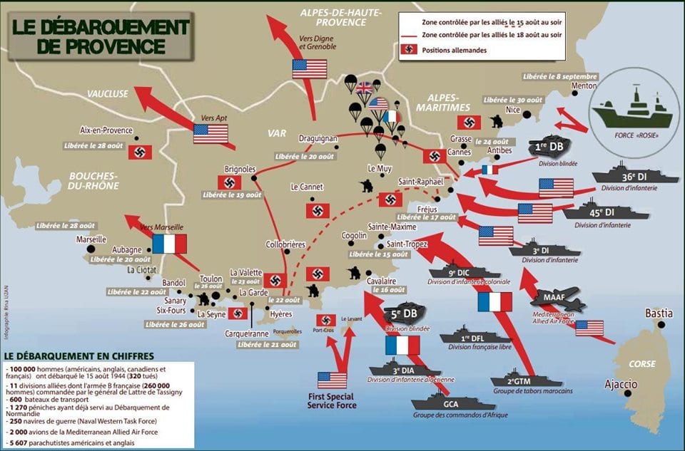 Par son communiqué de presse du 10 juin 2019, l’UPR demandait à Macron de commémorer le débarquement de Provence du 15 août 1944 et d’expliquer aux Français pourquoi de Gaulle refusa constamment de commémorer celui du 6 juin 1944.