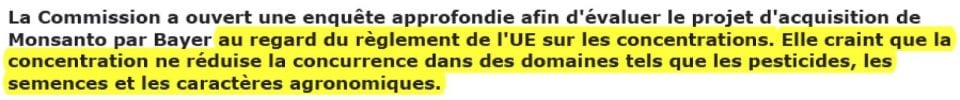 Preuve est ainsi faite que cette prétendue “enquête” de la commission européenne sur l’acquisition de Monsanto par Bayer relève de l’enfumage, et de rien d’autre !