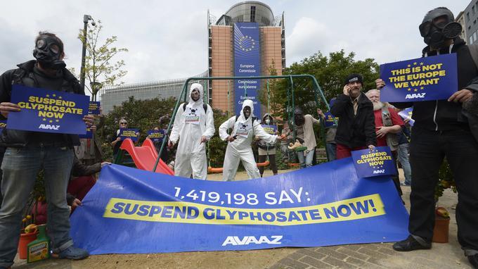 Selon le journal Libération “Monsanto a menacé, le 24 mai 2016, d’attaquer en justice le Commissariat européen à la santé et à la sécurité alimentaire si l’autorisation de vente du glyphosate sur dix ans n’était pas votée dans les délais impartis. La firme se dit prête à exiger des compensations «pour les préjudices imminents sérieux et irrévocables».” (revenir)