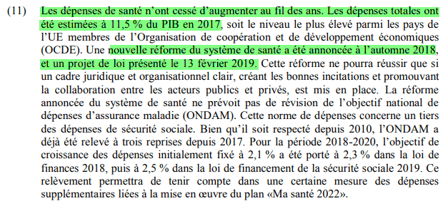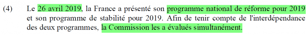 Le document précise par ailleurs que, « le 26 avril 2019, la France a présenté son programme national de réforme et de stabilité pour 2019 ».