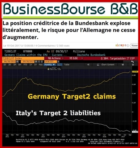 Je rappelle aux lecteurs que ce montant est une dette pour la Banque d’Italie, du montant effarant de 432 milliards d’euros, et non une créance comme pour la Bundesbank.