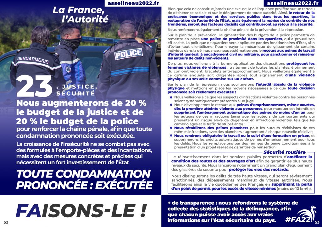 François Asselineau, conscient de ces enjeux, propose dans son programme présidentiel une augmentation de 20 % des budgets de la justice.
