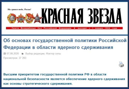 La doctrine officielle de la Fédération de Russie sur la dissuasion nucléaire dans les conditions actuelles a été rendue publique le 2 juin 2020.