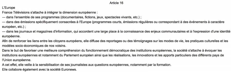 Extrait du décret du 23 juin 2009 fixant le cahier des charges de FRANCE TELEVISION