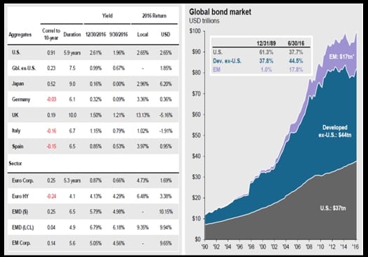 Rappelons au passage que le monde n’a jamais été aussi endetté et que cela se ressent forcément sur la taille du marché obligataire (« Bond Market » en anglais) :