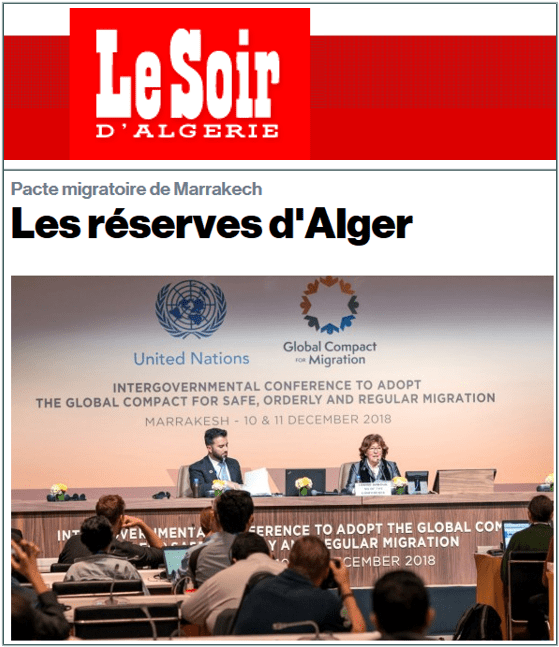 En s’abstenant volontairement à l’ONU le 19 décembre, l’Algérie a refusé d’endosser le Pacte pour ce qui la concerne.