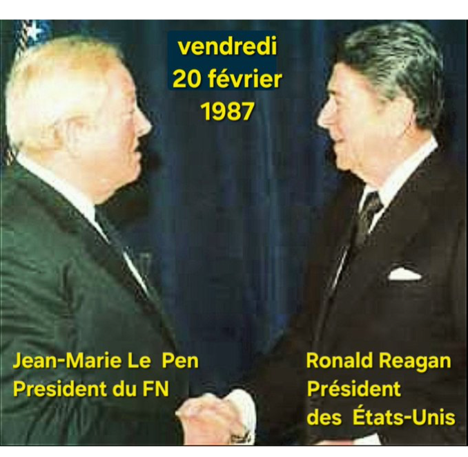 ▪️la collusion de Jean-Marie Le Pen avec Mitterrand, Charasse, les États-Unis (en illustration la rencontre Le Pen- Reagan le 20/02/1987), la secte Moon, la Korean CIA…
