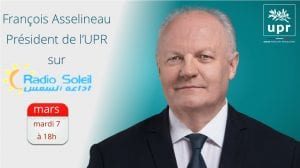 Le Président de l’UPR François Asselineau sera l’invité de Radio Soleil ce mardi 7 mars à partir de 18h.