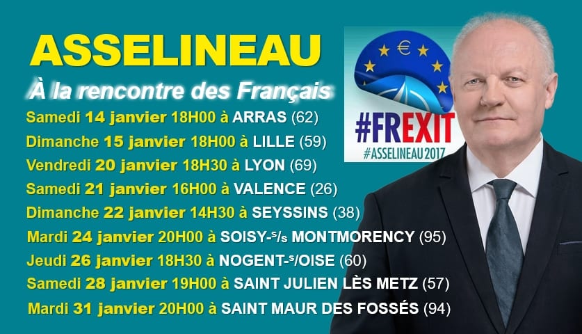 À tous les adhérents, sympathisants ou simples curieux qui veulent – en nombre sans cesse croissant – découvrir François Asselineau en direct, nous conseillons d’ores et déjà de noter sur leur agenda ses prochaines grandes réunions publiques à travers la France.