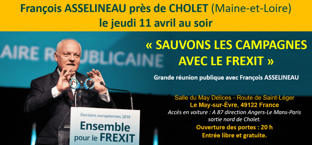 Précisions ici : https://upr.fr/evenement/reunion-publique-de-francois-asselineau-dans-le-maine-et-loire-a-cholet-49/ #Agriculture#Européennes 2019#Réunion publique