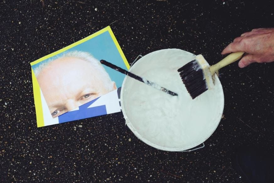 « Les gens d’ici sont peu intéressés par la politique et ne regardent pas beaucoup Internet. Alors les affiches c’est important. Je colle plutôt en fin de journée, pour être tranquille, éviter les voitures qui me klaxonnent, et aussi… ne pas être reconnu. Car les gens n’aiment pas trop ceux qui collent des affiches politiques. »