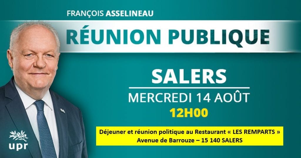 Le déjeuner-réunion politique aura lieu à partir de midi au Restaurant Les Remparts , avenue de Barrouze, 15140 Salers.