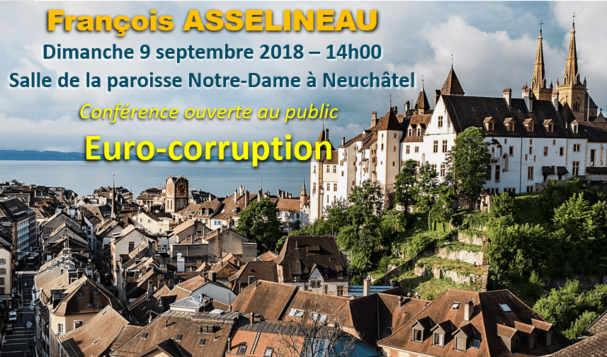 Dimanche 9 septembre à Neuchâtel : conférence « Euro-corruption »