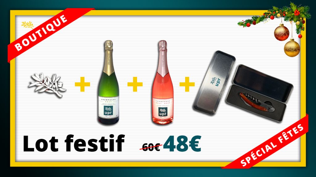 – 1 bouteille de champagne brut UPR (prix de vente normal 19 €)
