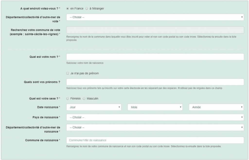 - Sélectionnez votre pays de naissance, votre département de naissance et votre commune de naissance (saisissez les deux premières lettres de la commune de naissance, et sélectionnez dans la liste)