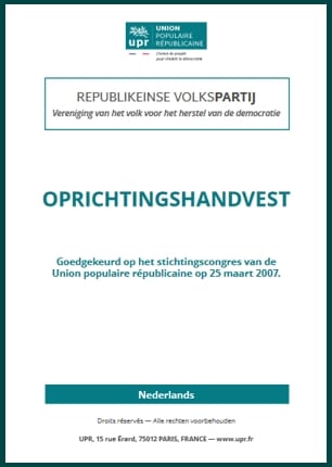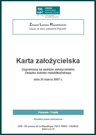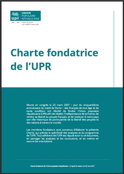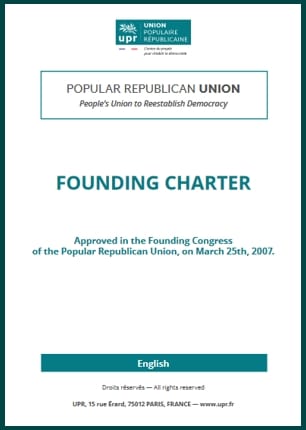 La Charte fondatrice de l’UPR, adoptée par le Congrès fondateur du 25 mars 2007, est disponible dans sa version d’origine en français (sans aucune modification depuis lors) sous format PDF ici :
