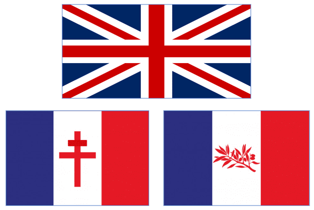 Toutes les salles que nous avons louées seront pavoisées aux couleurs du drapeau britannique (l’Union Jack), du drapeau de la France Libre (drapeau français frappé de la Croix de Lorraine) et du drapeau de l’UPR (drapeau français frappé du rameau d’olivier qui figurait sur la pièce de 1 franc).