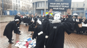 Nombreux sont les manifestants qui réclament le retour de la démocratie et qui se prévalent pour cela de la Constitution de la République Fédérale d’Allemagne (Grundgesetz en allemand), qu’ils brandissent à la face des policiers :