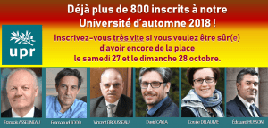 Dans ce contexte d’effondrement général, la seule chose qui grimpe, c’est… le nombre des adhérents de l’UPR. Le flux d’adhésions à notre mouvement se poursuit de plus belle ; nous aurons l’occasion de faire le point prochainement pour nos lecteurs.