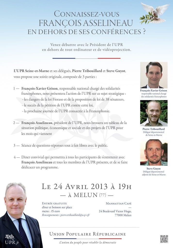 Note : Vincent Brousseau a été tête de liste UPR Centre aux élections européennes de mai 2014.